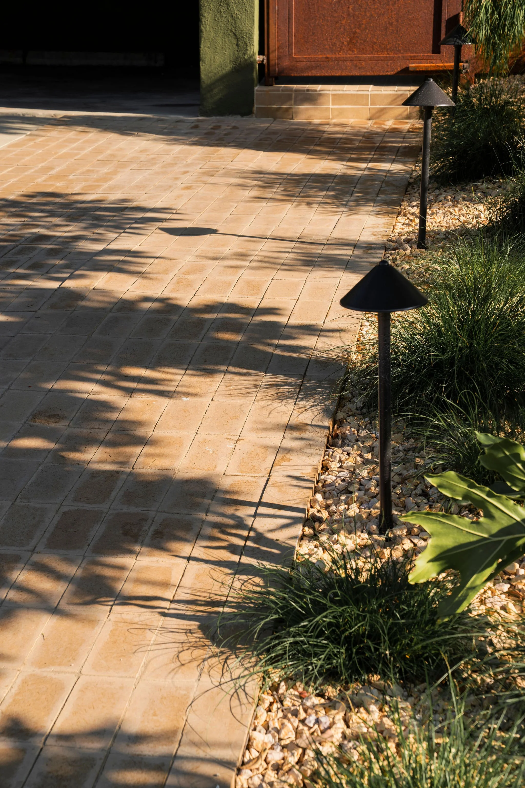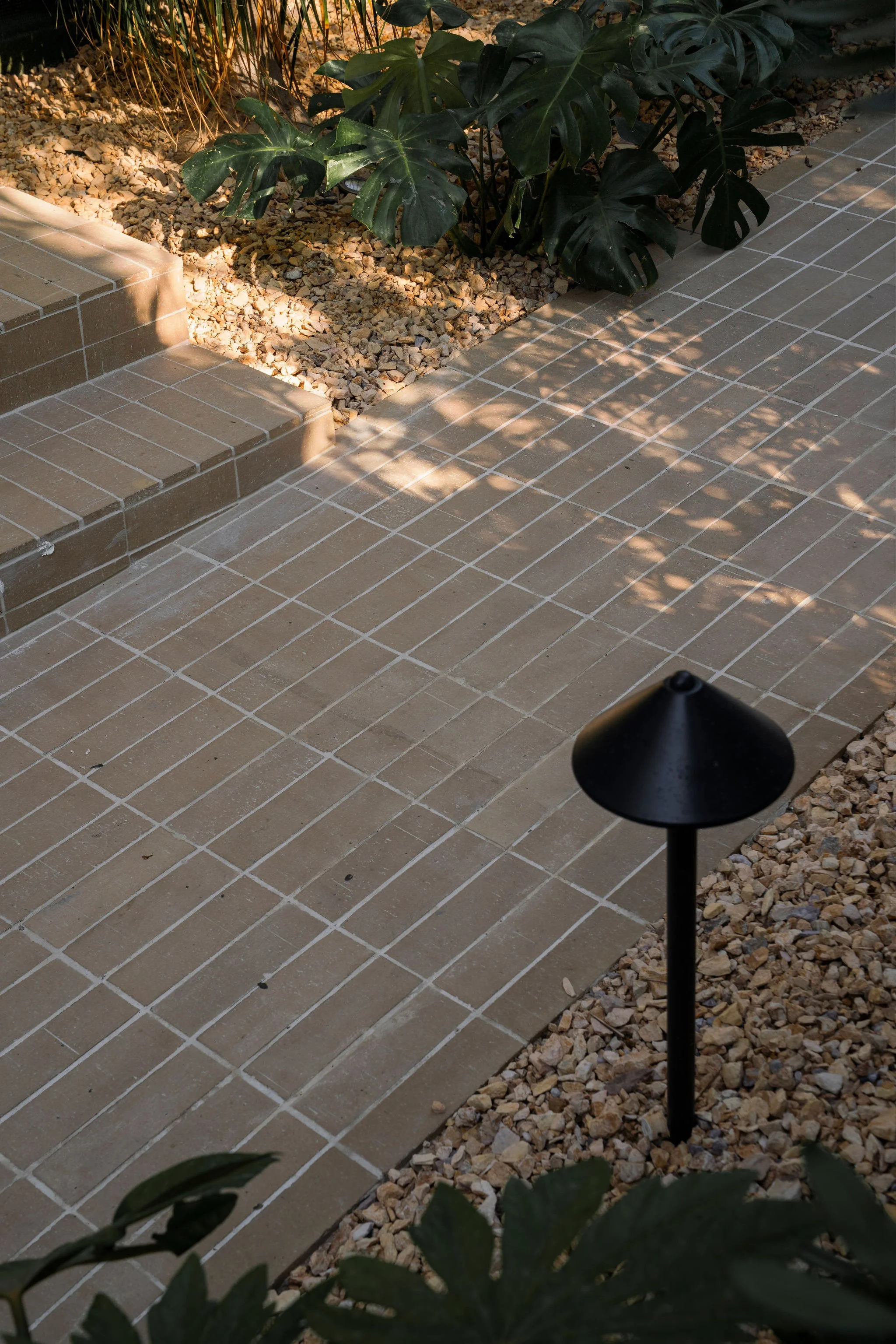 At The Silver Laurel, ORCA Living designed the exterior spaces & provided their signature materials for the hardscapes. Their Brick Clay Paver & Tile in Copal offered just the right earthy touch while remaining geometric and aligned with the midcentury vision.